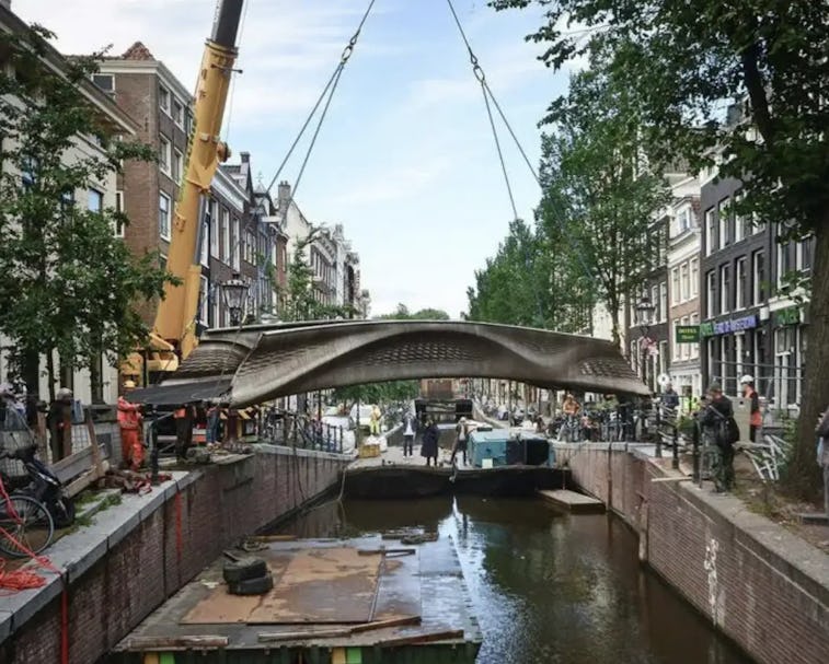 Imperial College London just made history by erecting the first-ever bridge constructed entirely via 3D printing, Business Insider reports. The steel bridge, which opened in Amsterdam’s Red Light District last week, is 12 meters long and weighs nearly 5 tons — no small feat of engineering and patience. It opened this month to foot traffic over the Oudezijds Achterburgwal canal after being unveiled by the Netherlands’ Queen Máxima on July 15.
