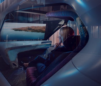 Three modes, Explore, Entertain, and Ease, allow riders to choose their experience. Explore brings your attention to the outside world while Entertain immerses passengers in a cinematic experience. Ease literally transforms the vehicle, slipping seats into a “zero-gravity” position, dimming the display, and making the windows opaque for comfortable resting.