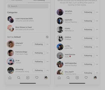 Following Categories — The feature, which can be accessed by tapping “Following” on your profile, splits your followers into a few categories, including “Least Interacted With” and “Most Shown in Feed.” The categories use data from your Instagram activity for the last 90 days.