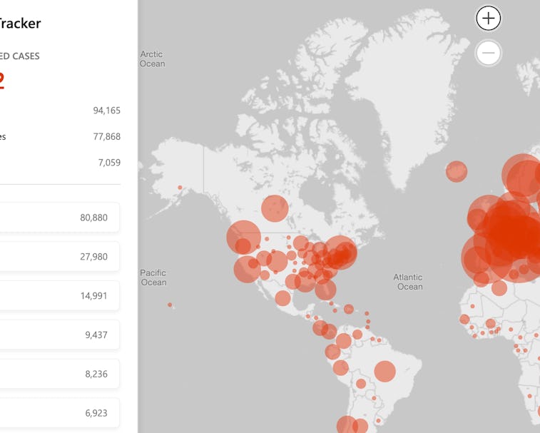 This morning Microsoft launched a COVID-19 tracking tool to visualize the number of new coronavirus cases across the world. The tracker, which is accessible on both desktop and mobile browsers, aggregates data from the CDC, the WHO, the European CDC, and Wikipedia.