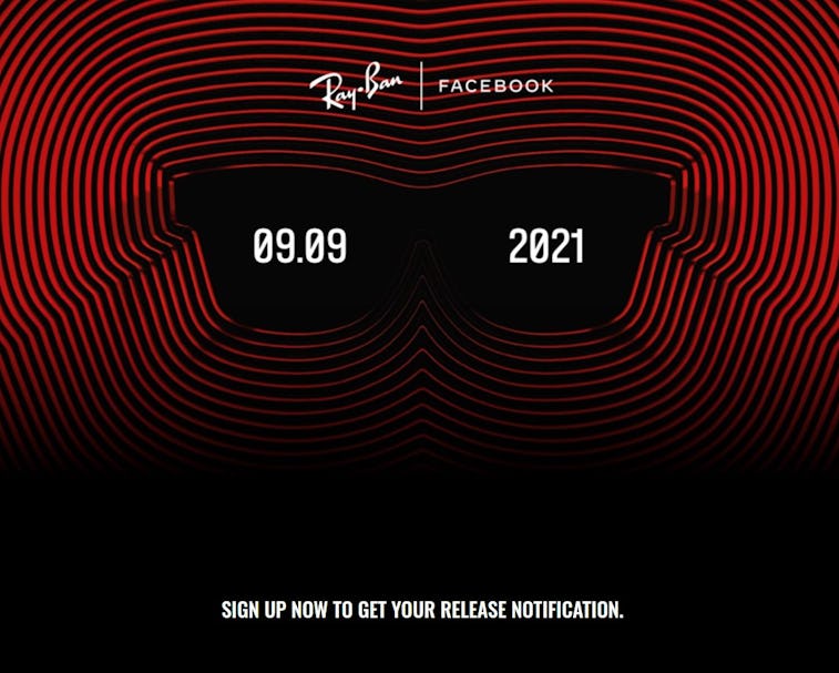 Coming soon — We’ve known that the two companies have been working together on a pair of smart glasses since last year, and it looks like we’re finally about to find out more. First noticed by UploadVR, Ray-Ban has posted a teaser for what appears to be the teaser for the smart glasses co-developed with Facebook. The teaser image on Ray-Ban’s website shows a silhouette of what looks like Wayfarer-style frames with a cryptic September 9 date to keep us enthralled. Though the site lacks any juicy information, you can sign up to get a “release notification,” which should alert you when the glasses become available for purchase.