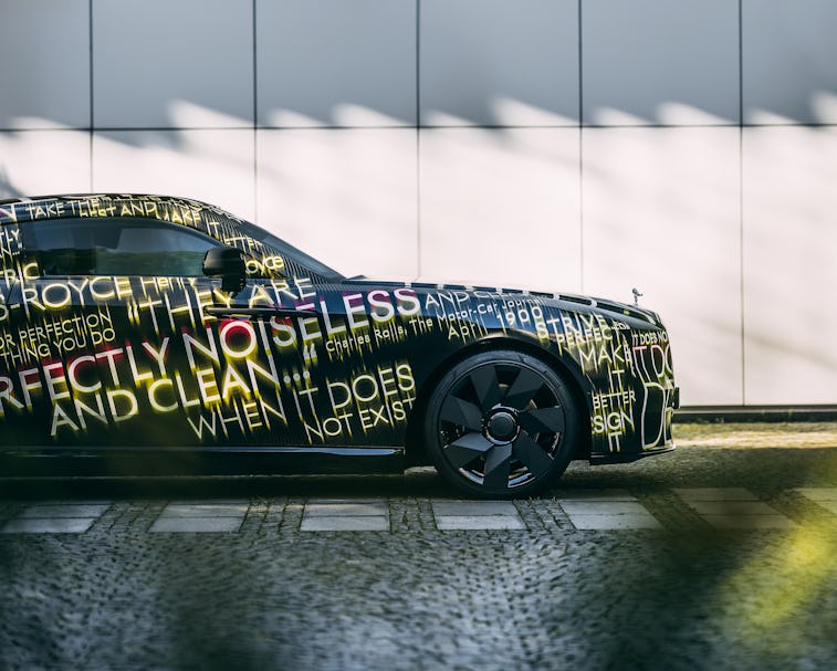 Even the car’s appearance is still under wraps. The first look provided by Rolls-Royce shows off the Spectre’s basic body style, but everything else is wrapped up with camouflage. It looks very much like Rolls-Royce’s more general contemporary aesthetic, which the company has taken to calling the “Architecture of Luxury.”
