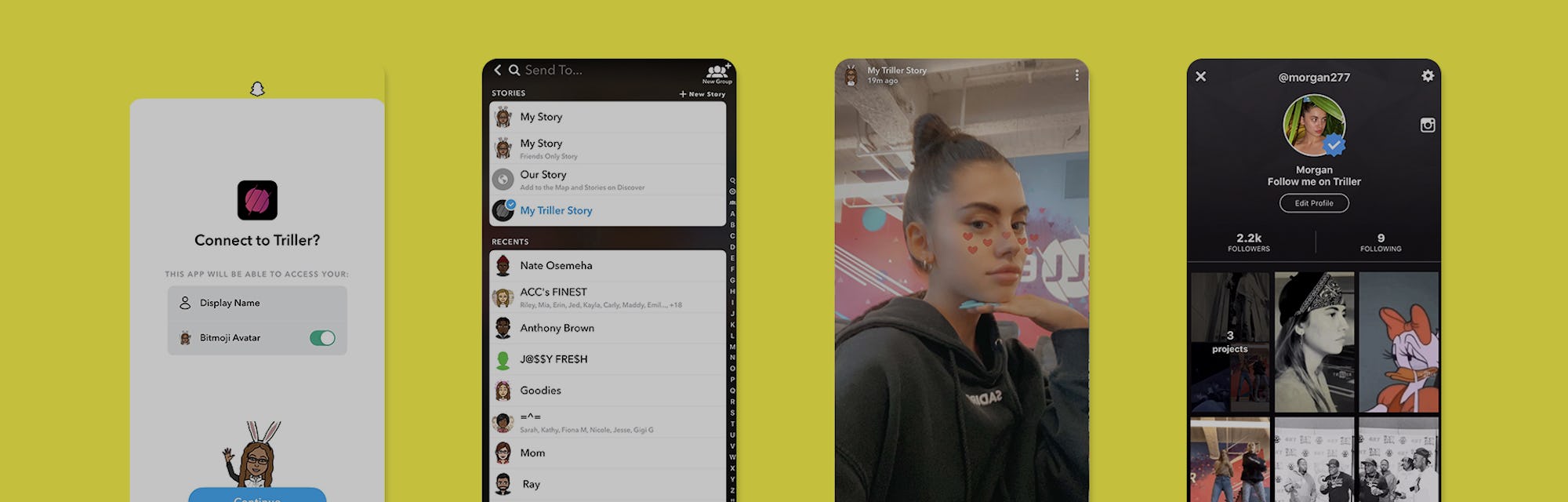 At launch, Snap says there are going to be four applications using App Stories: Hily, Octi, Squad, and Triller, with more expected to take advantage of Snap Kit in the near future. One of the bigger names that will bring Snapchat Stories to its service is dating app Tinder, though that's not available yet and it's unclear when it will officially arrive.