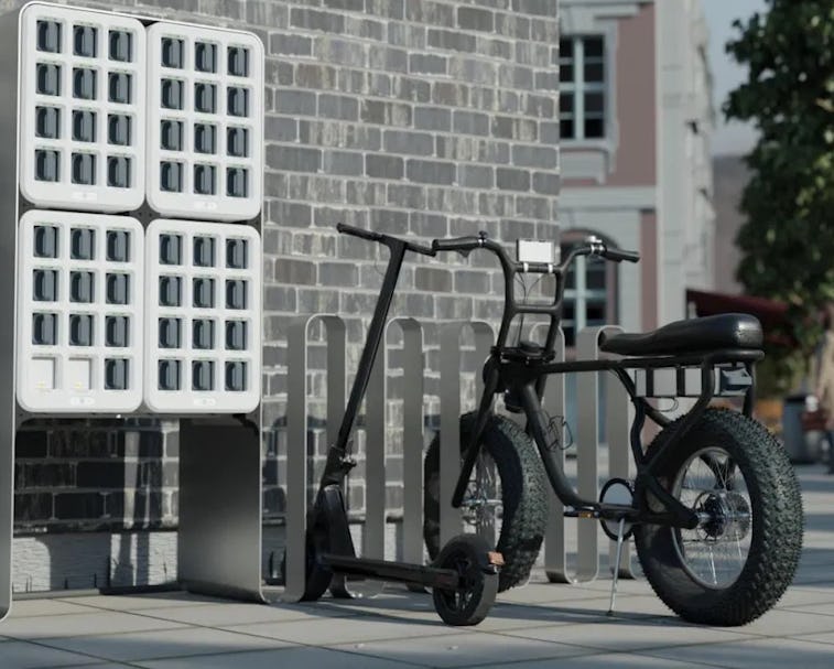 Swap me out — Teleport Mobility wants to create a network of battery swapping stations located at businesses like convenience stores (think Amazon Lockers), and shared mobility companies like Lime could incorporate Teleport's battery design into their bikes and scooters. Instead of needing an army of contractors to recharge rides, users could just find one of the battery stations and swap the battery out. Teleport says its battery packs are also built to endure, meaning better reliability and longer lifespans than many existing mobility batteries in production today.
