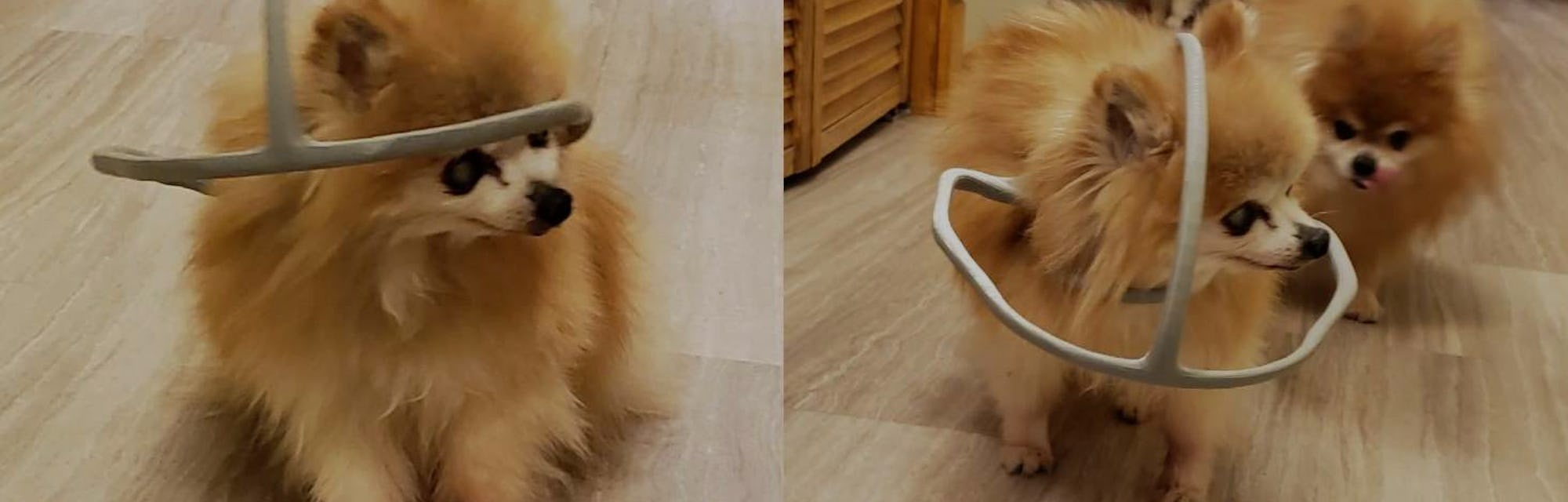 Designer Chad Lalande’s 18-year-old Pomeranian, Sienna, has such poor eyesight that she’s become prone to bumping into doorframes and walls. So Lalande did what any amateur designer with a 3D printer would do: he crafted a custom “safety hoop” to help.