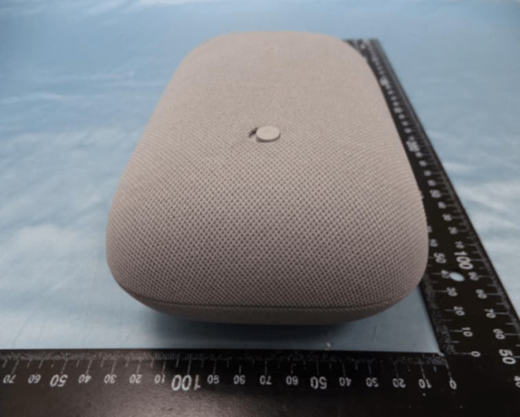 It looks fine — The images reveal a speaker that looks less like the existing Google Home and more like the Nest Mini. You might say the Nest Speaker sort of looks like a pillow, or maybe an Apple HomePod that's been stepped on. It features an all-fabric design this time around like the Nest Mini, and there's a new physical switch for disabling the microphones rather than a touch-sensitive button. Based on the plastic (rubber?) on the two sides of the speaker, it seems like the Nest Speaker is meant to sit upright.