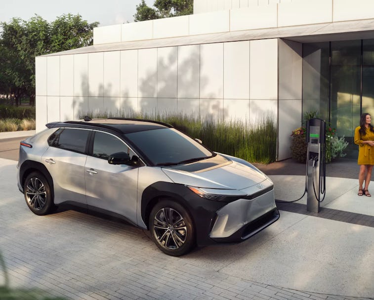 The front-wheel-drive version of the bZ4X will be able to transport you approximately 250 miles before needing a recharge, Toyota says. That’s about 100 miles less than similar offerings from Tesla, no doubt the SUV’s most intense competition. Toyota hasn’t provided an estimated range for the all-wheel-drive model, though we’d expect it to get something like 50 miles less per charge, based on the range of Subaru’s Solterra, the bZ4X’s closest cousin.